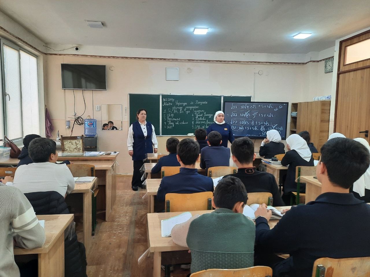 9 - sinf o'quvchilari bilan "Kasb turlari" haqida suhbatni maktab psixologi Z.Xalikova va fan o'qituvchilari o'tkazdilar